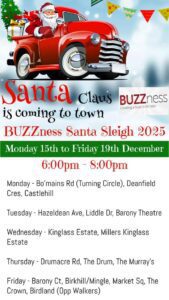 Like The Fair, Christmas will come and disappear and the lights and decorations will be put away again.  In the mean time let us all enjoy our build up to Christmas and watch out for the Buzzness Santa